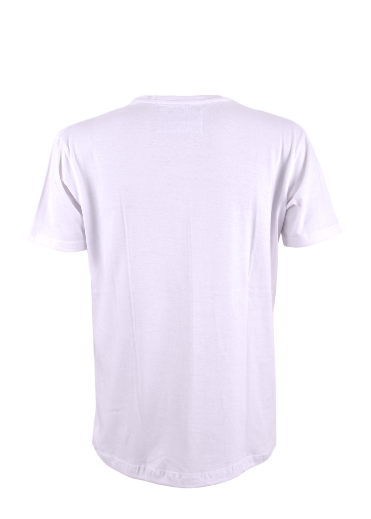 A simple yet chic white T-shirt, featuring triangle-shaped. Dress with shredded denim shorts and flat shoes for an outdoor activity.