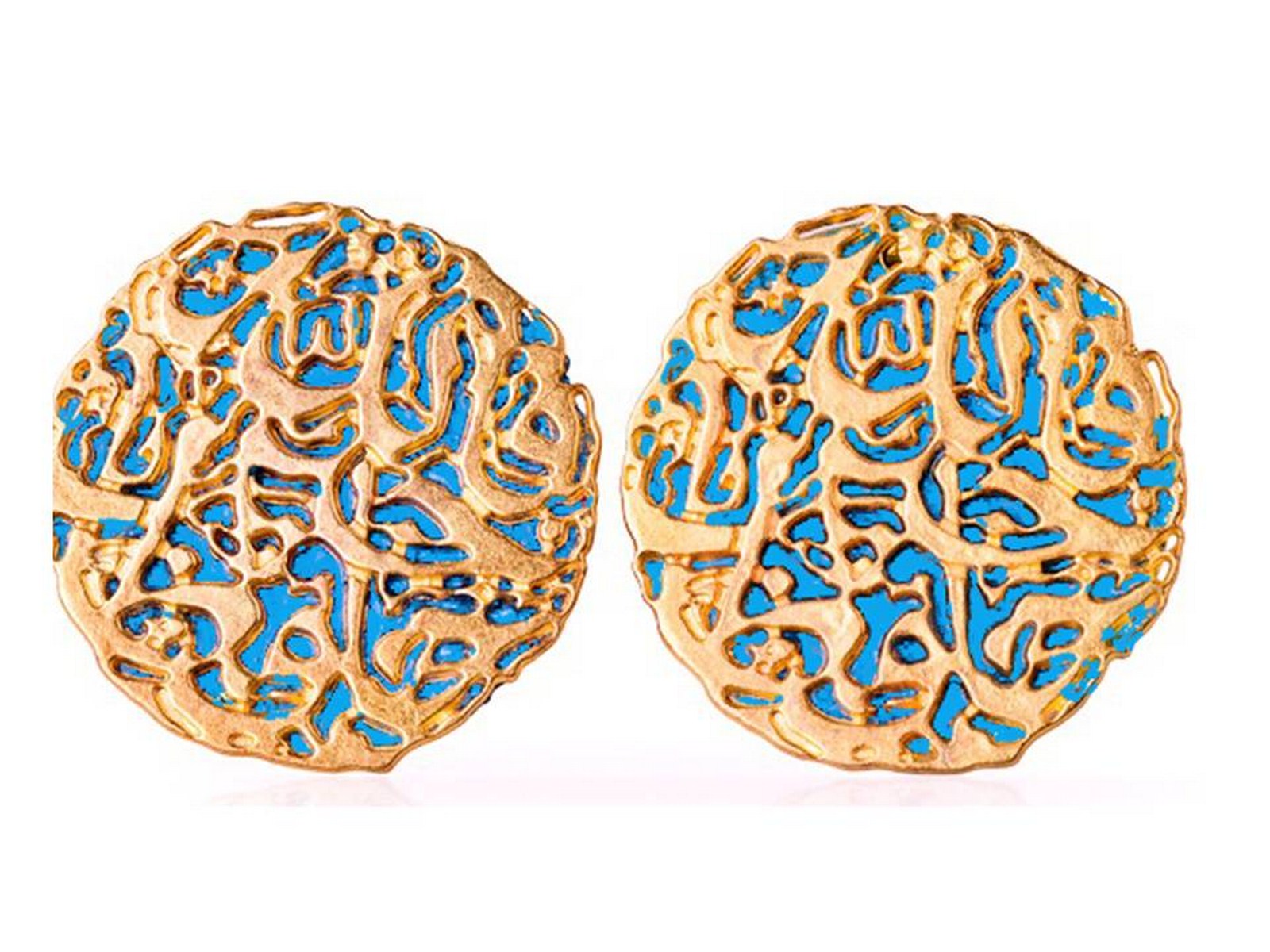 Copper earring plated gold with aqua color with Slogan ” ���� ��� ���� ” Plated gold 18 carat.