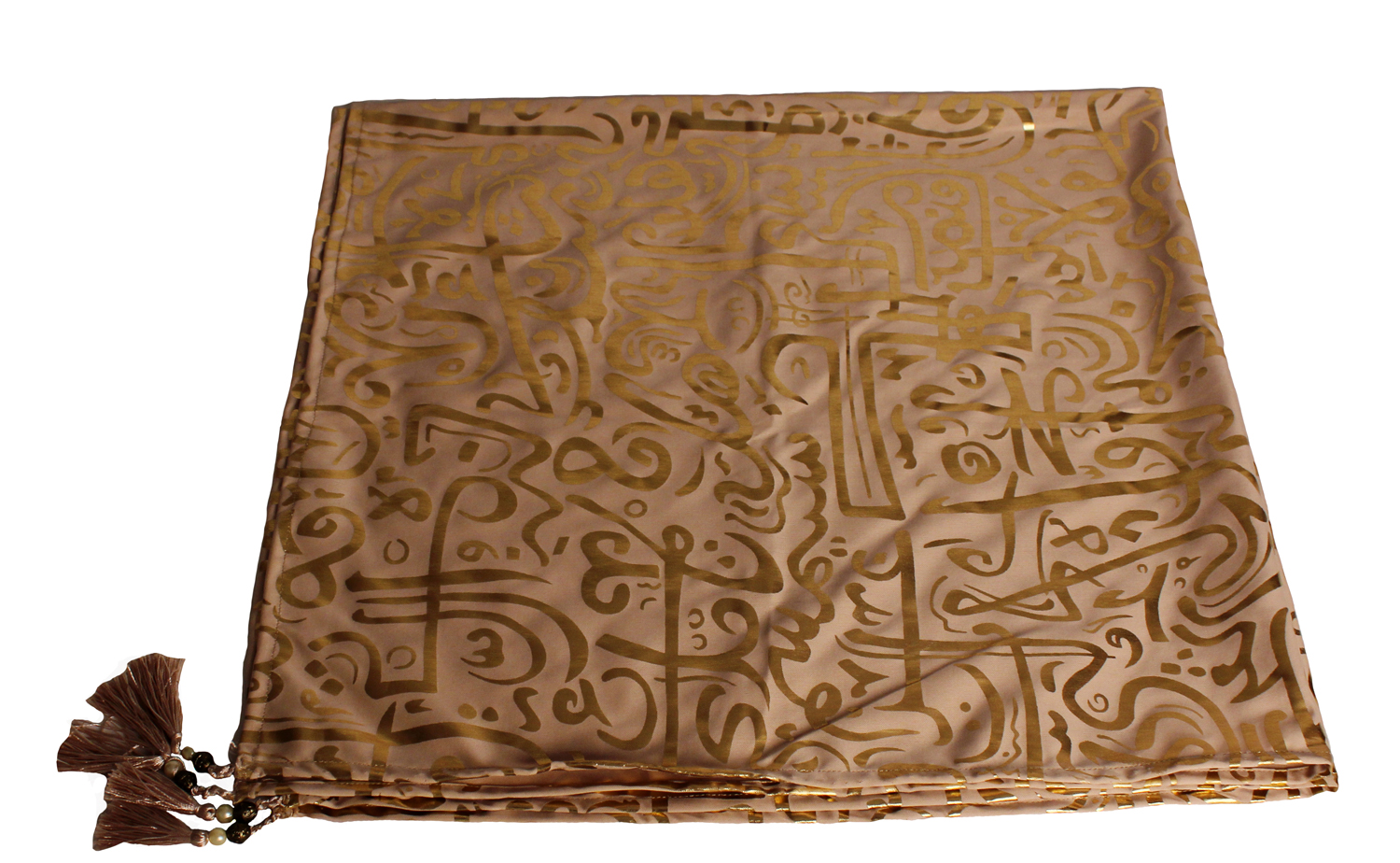 Arabic calligraphy satin Gold & Beige tablecloth Dimensions 1*1