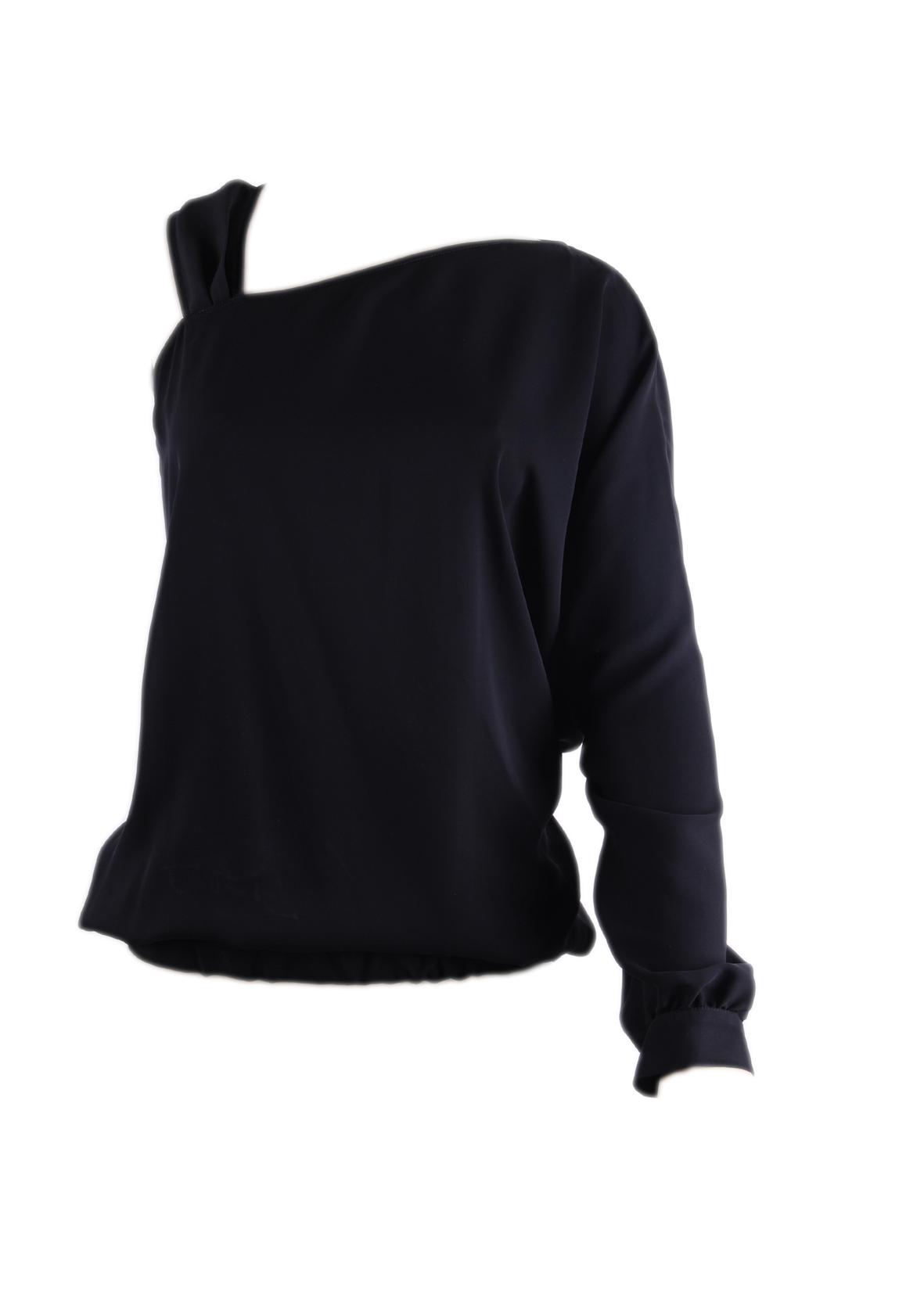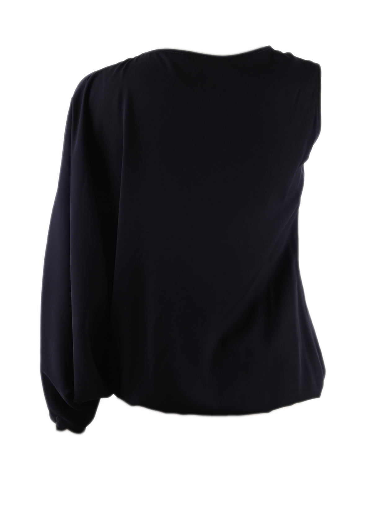 BLACK CHIFFON SATIN BLOUSE ONE SIDE AMPLE SLEEVE THE OTHER SIDE BRETELLE