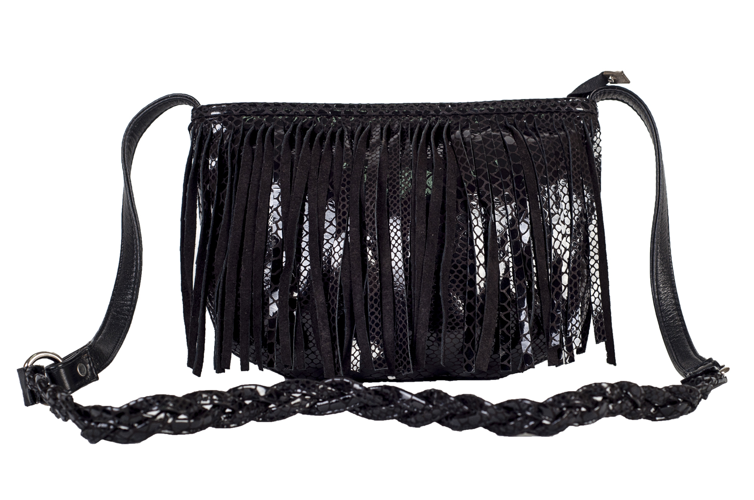 Adding this black leather bag to your outfit will give you the ultimate cowgirl feel. Put on a cowboy hat to complete the look in style.