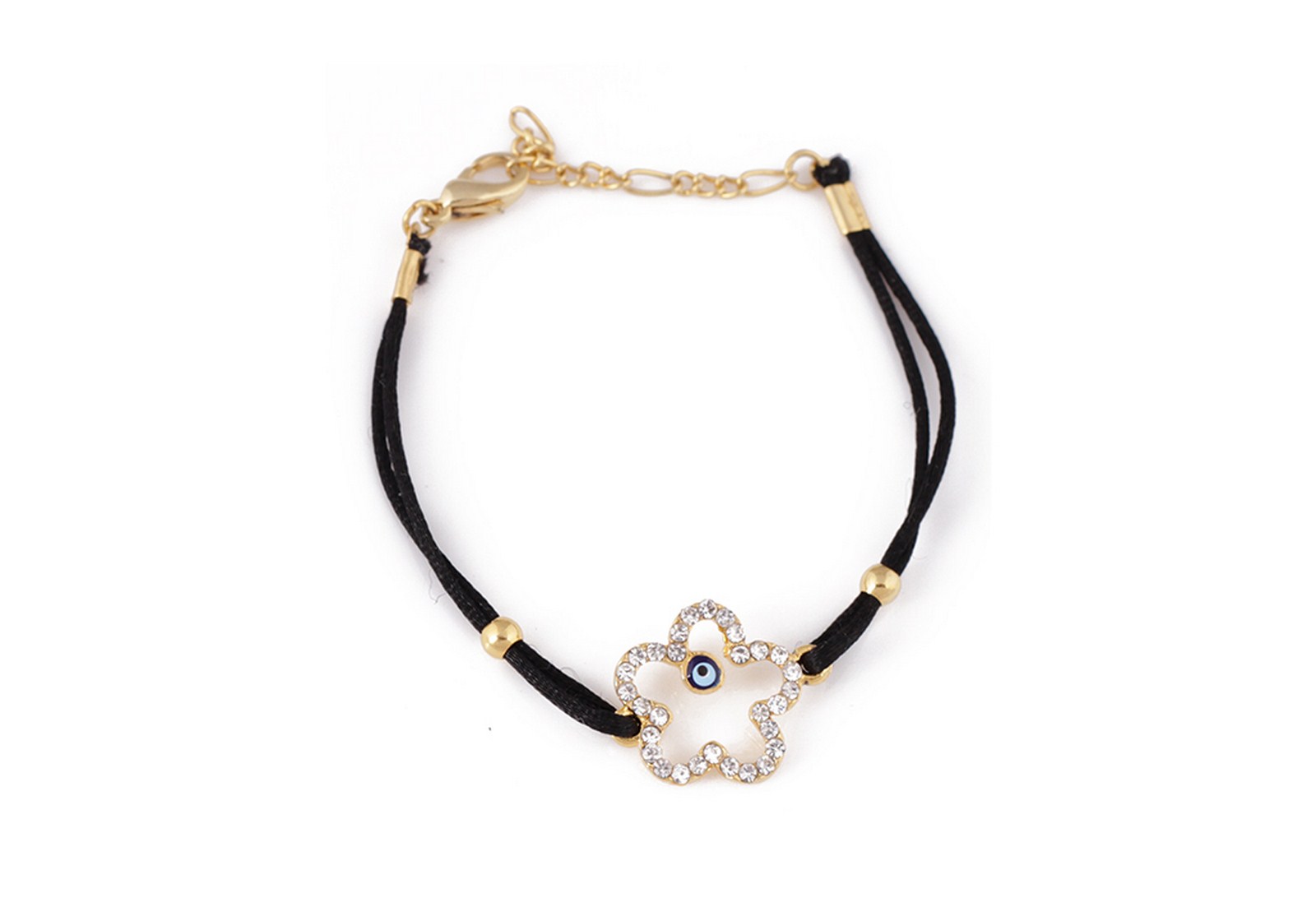 Black satin thread bracelet with gold plated flower.