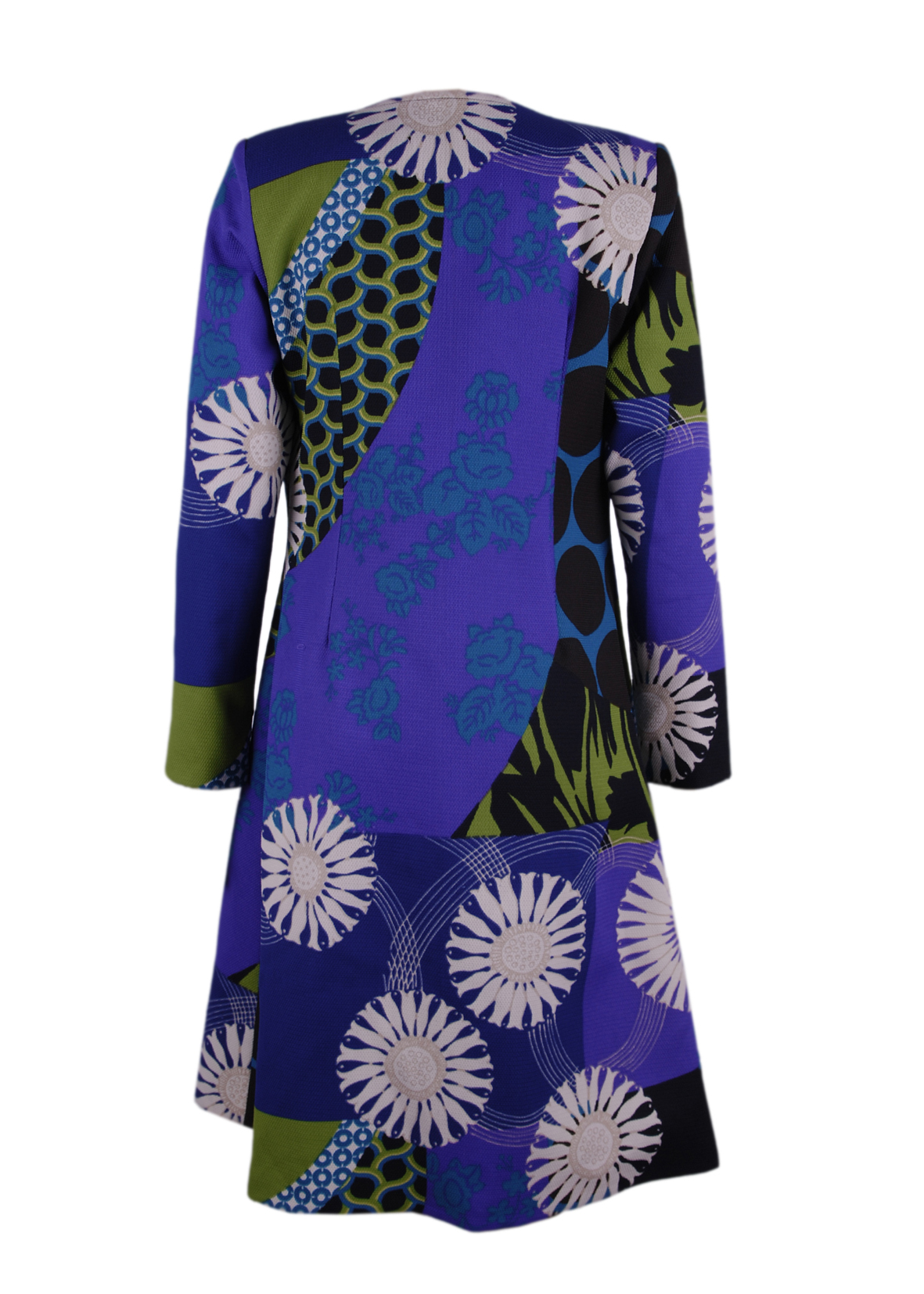 Make A Statement With This Unique coat. Embellished with abstract prints, This coat Has Flair. Wear It With Black Skinny Jeans, Boots, And Gold Accessories For An Elegant Outfit.