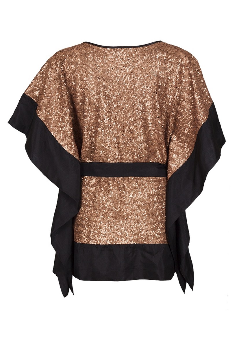 Lightweight and edgy, this sequined poncho is exactly what you need for a glamorous night out. Featuring silk linings for extra sophistication, this top can be worn with leather leggings and suede heels.