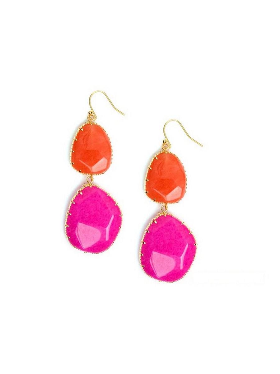 Enjoy the popular colour blocking trend with these stylish earrings. Infused with the tropical colours of orange and pink, these earrings dangle freely and comfortably. Slick your hair back to make the earrings really stand out and wear them with a loose chiffon top for a nice contrast.