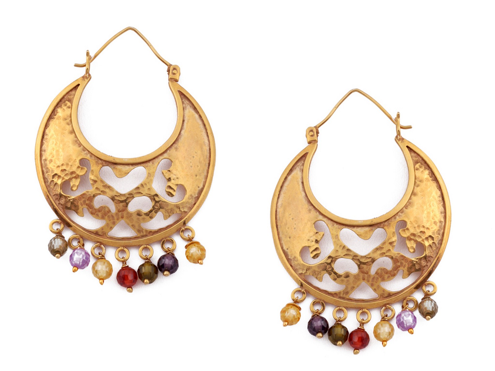 Inspired by the shape of the moon, these earrings by Mahy will make your nights brighter. Made from silver and plated with 18 carat gold, these earrings are embellished with authentic tourmaline stones. A timeless piece of jewellery that you can wear everyday for a touch of elegance.