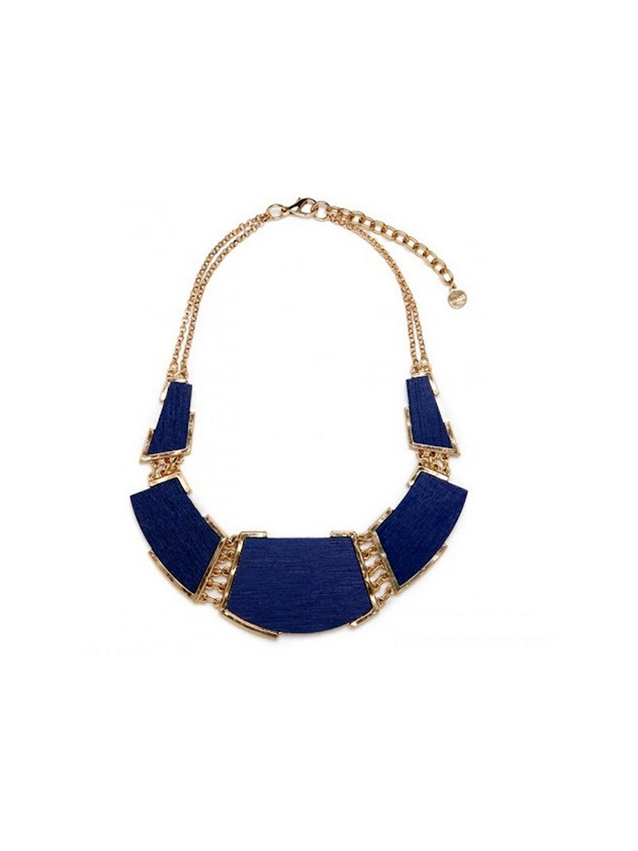 Earn major fashion points with this Art Deco inspired necklace. With a striking colour and a contrasting gold chain, this necklace will turn a simple top or dress into a dazzling outfit. Wear it with colours like white, green, orange and yellow for maximum effect.