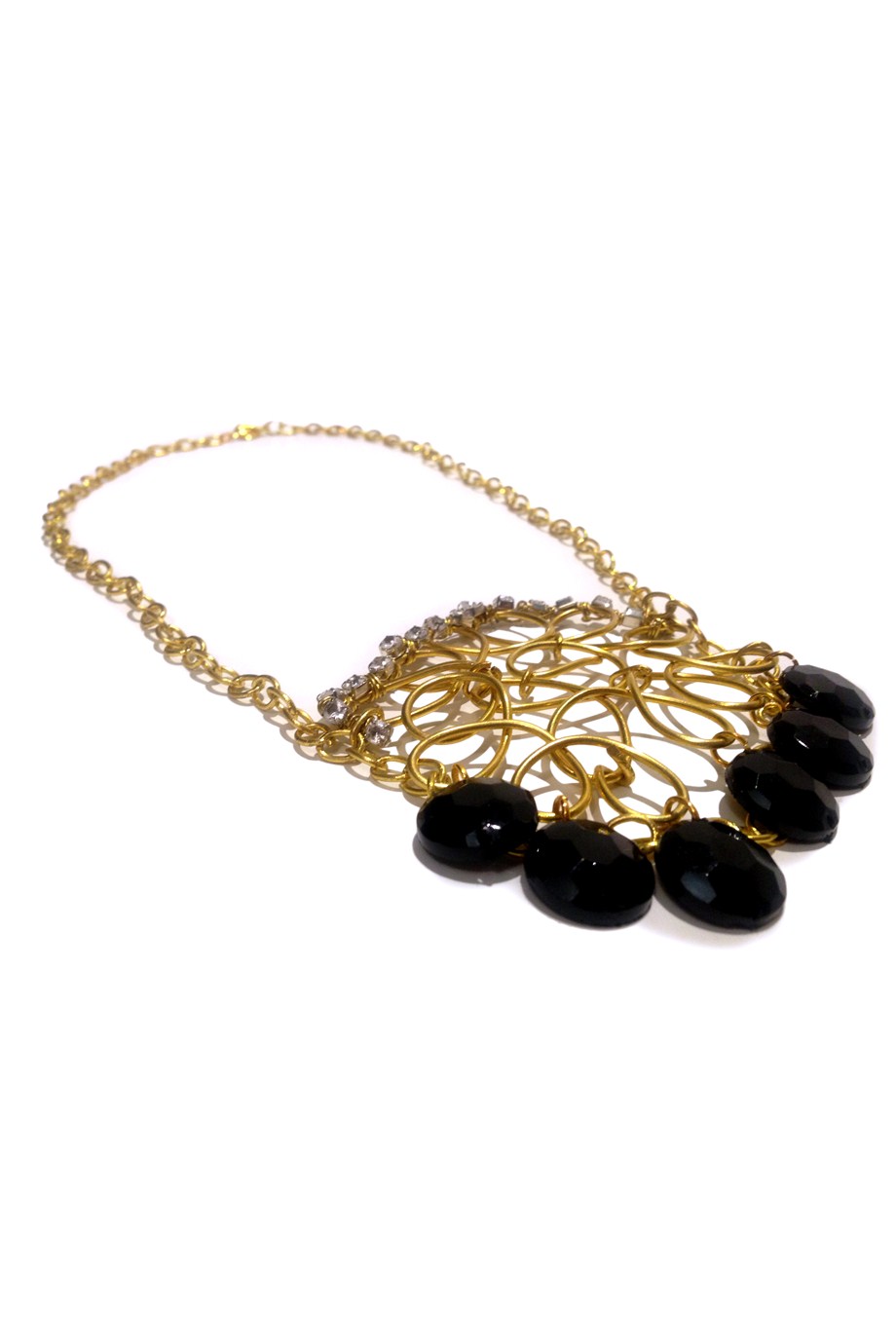 The mix of gold, black and clear crystals makes this the perfect necklace for an evening gown.