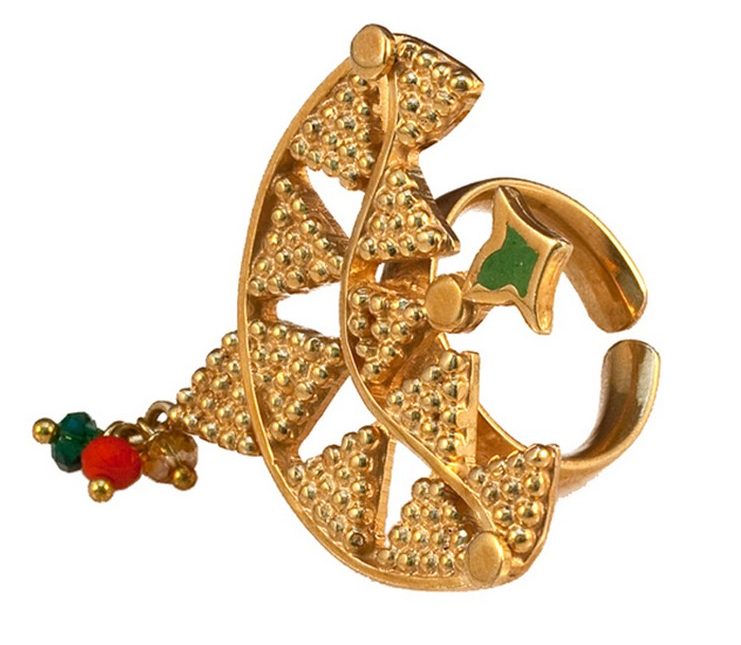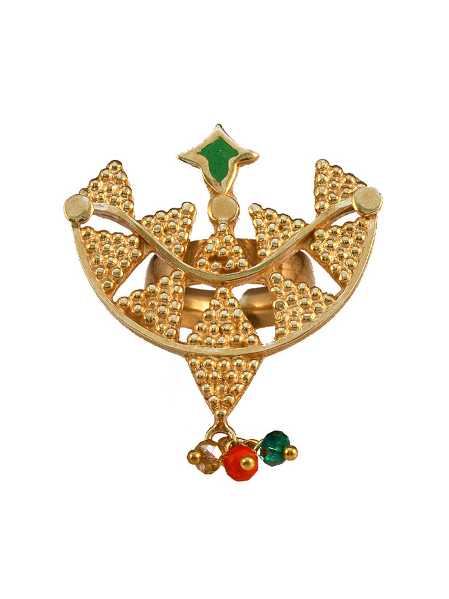 This funky handmade ring is a great addition to your accessory collection. The coloured teardrop details really stand out against the gold matte colour of the ring. Made with gold-plated silver and gorgeous coloured enamel stones, the ring will look great with a cream dress and heels in a bold colour.