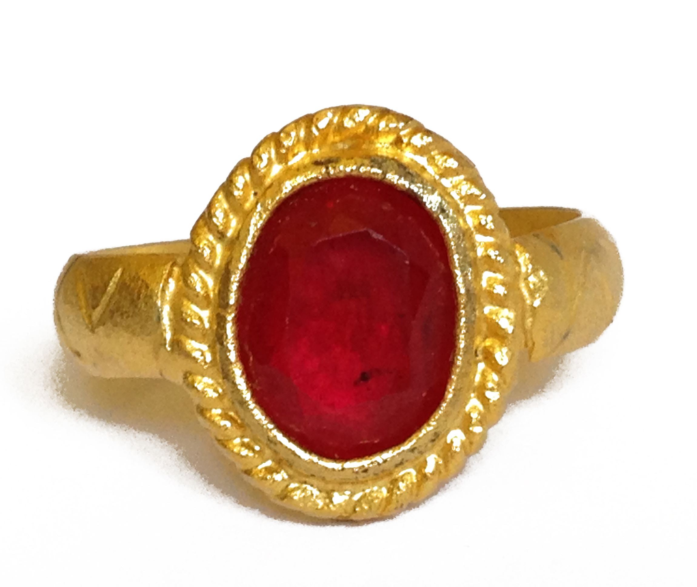 Between the striking gold colour, the antique fringe and the spectacular amethyst gem in the middle, we are totally in love with this ring.