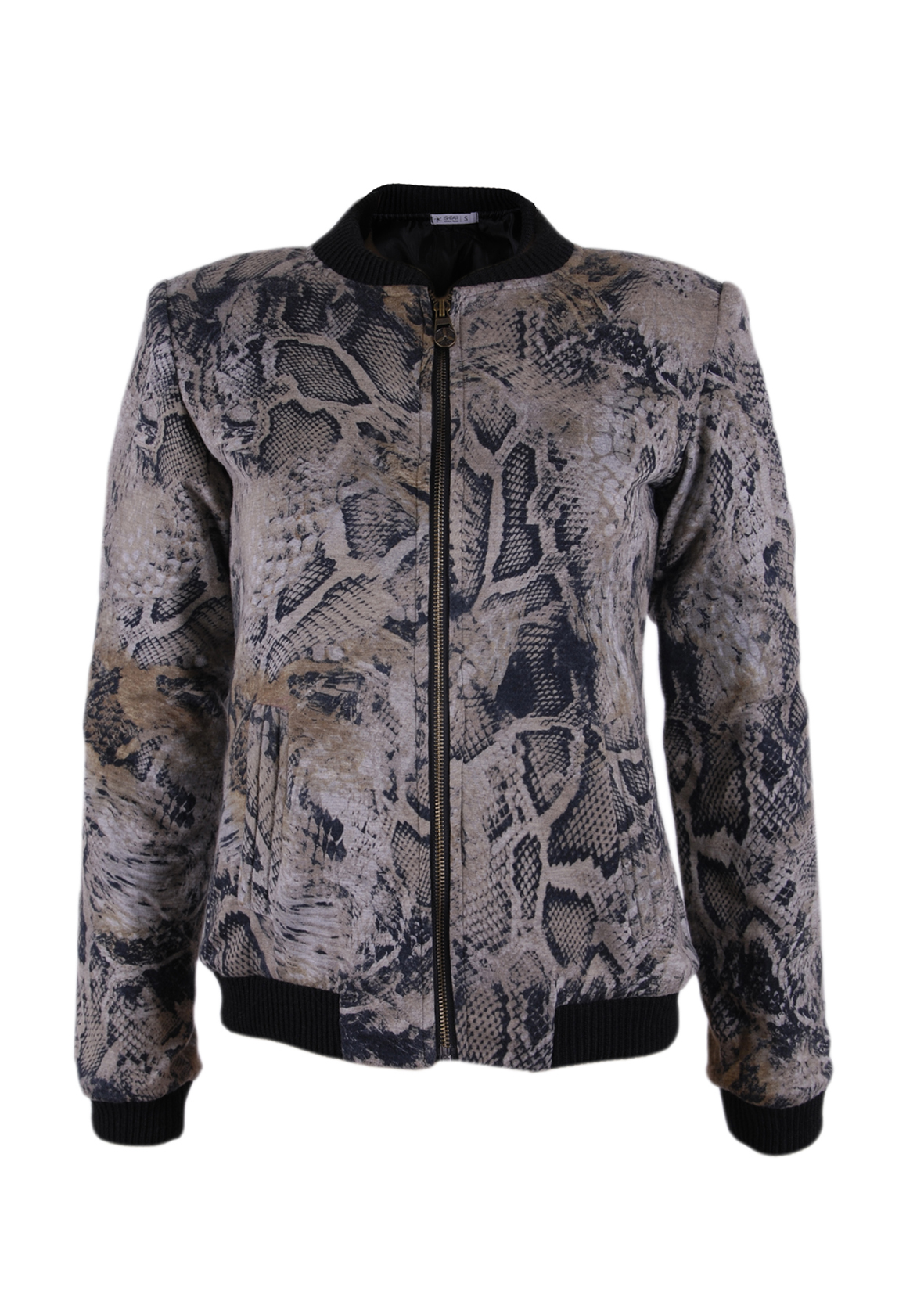 Grey Snake Print Sweater with a zipper and two pockets