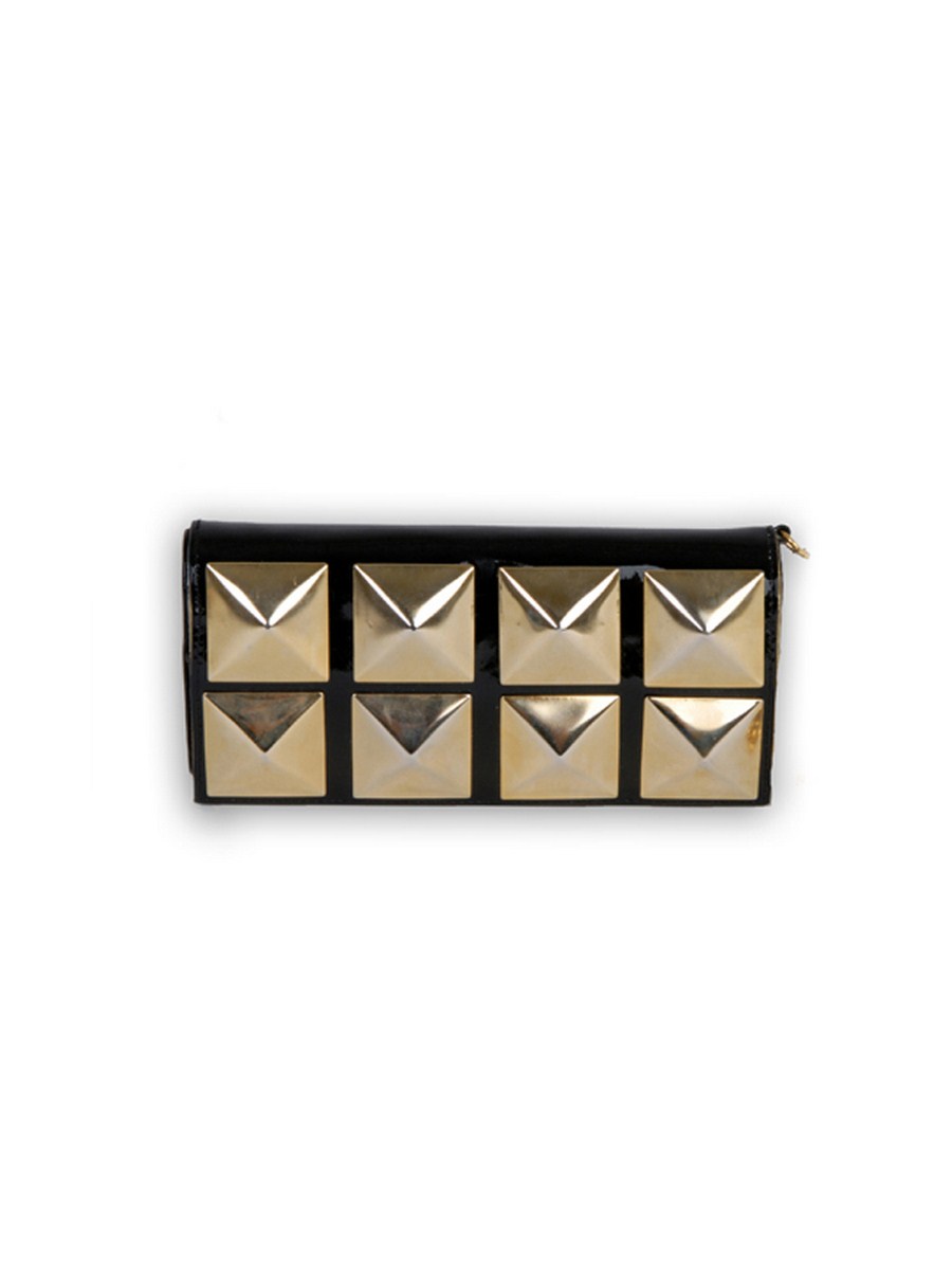 Get into the studded trend with this simple studded black clutch. This small yet impactful design will give your look an instant edge for those late night dates. Pair it with a fitted blazer and an asymmetrical skirt for a rocker chic vibe.