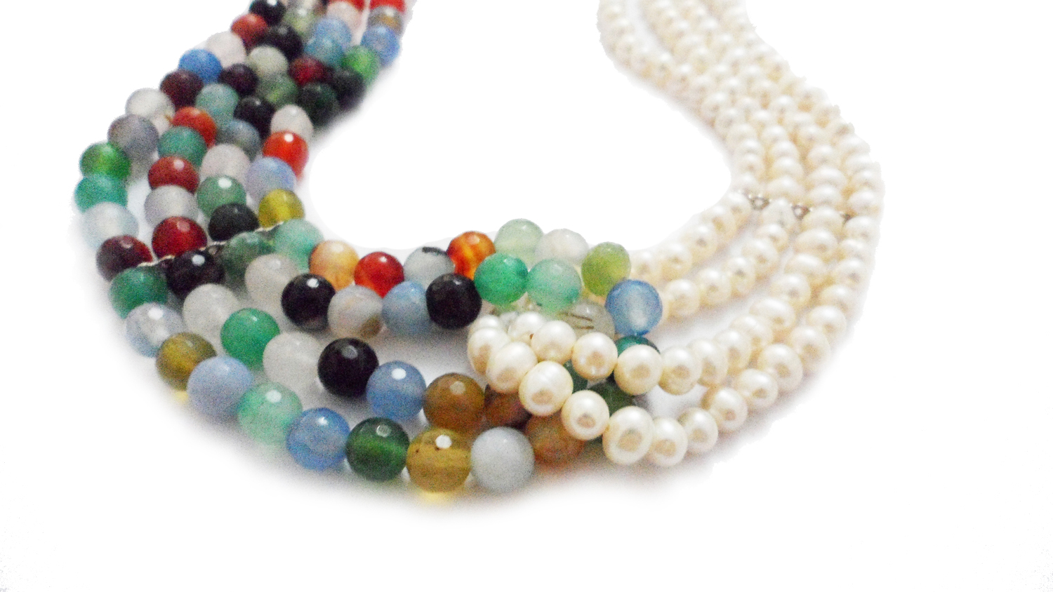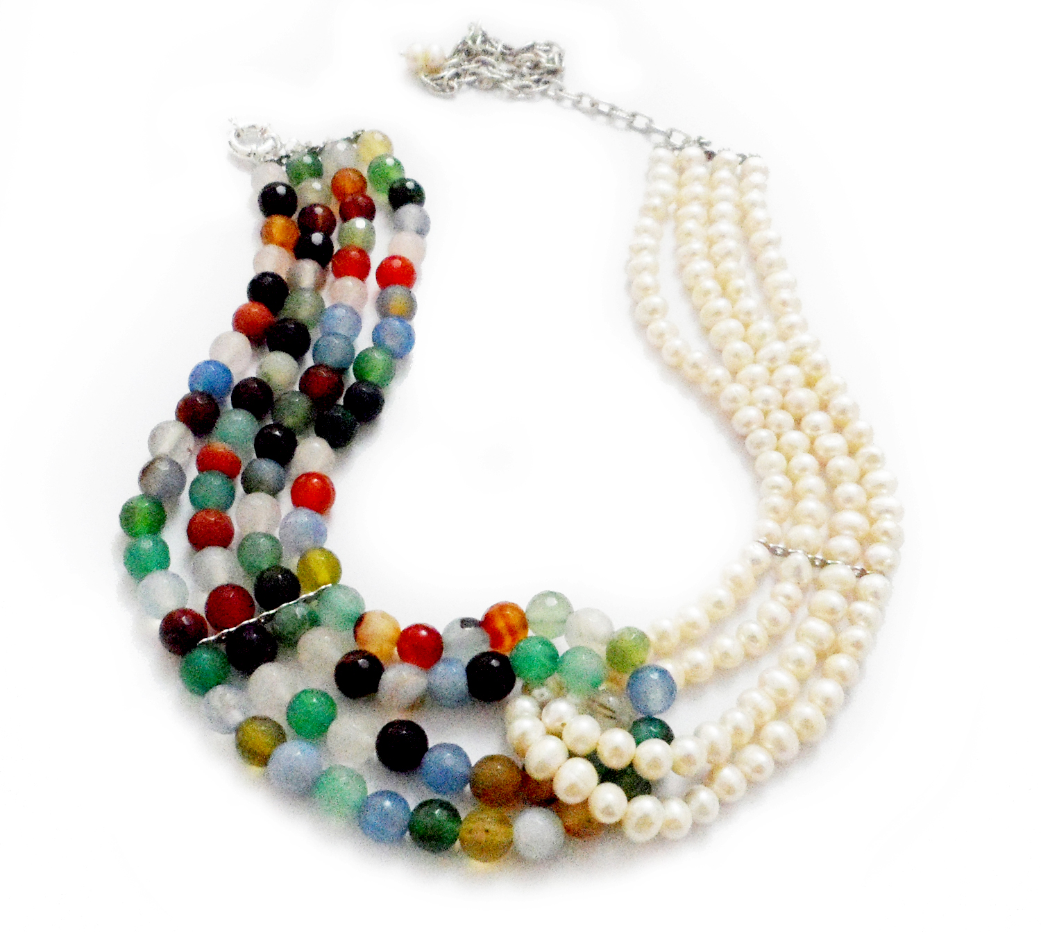 Contrast is always in fashion, especially when it is a half colors and half white pearled collier. Whether you wear it on a simple outfit or an elegant dress, this necklace works as a funky accessory.