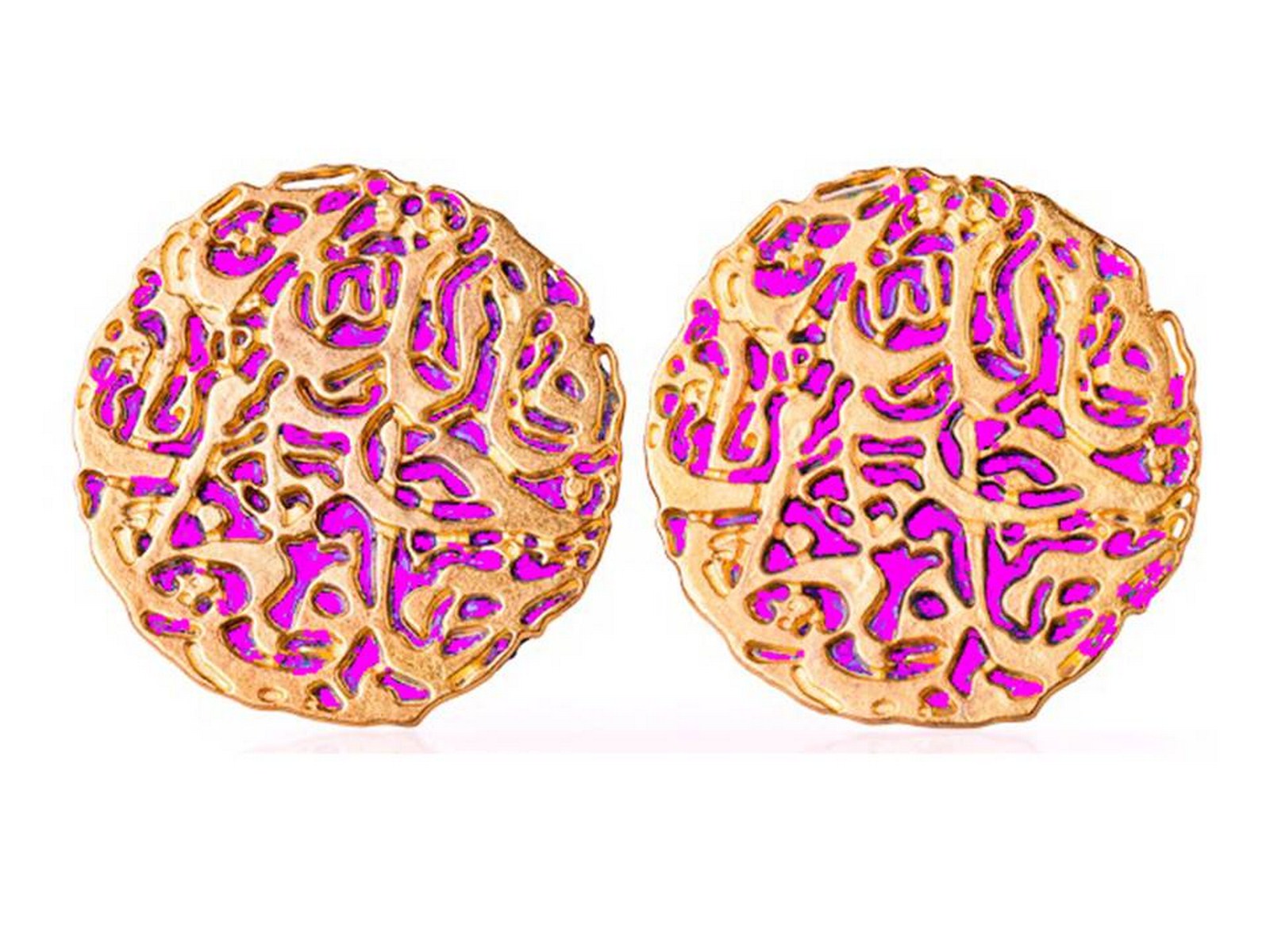 Copper earring plated gold with neon pink color with Slogan ” ���� ��� ���� ” Plated gold 18 carat.