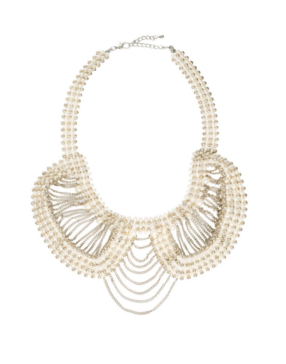 Featuring a collection of dazzling pearls, this collar necklace is a statement piece. Wear with an evening gown for maximum elegance.