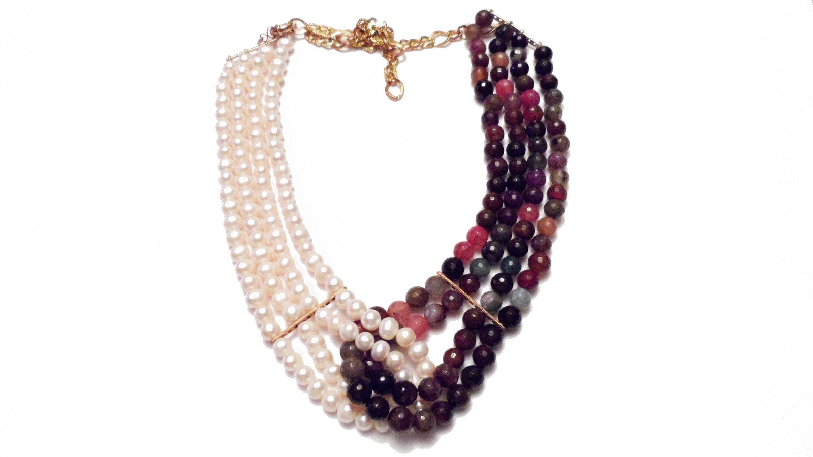 Pure pearls and colorful precious stones akik