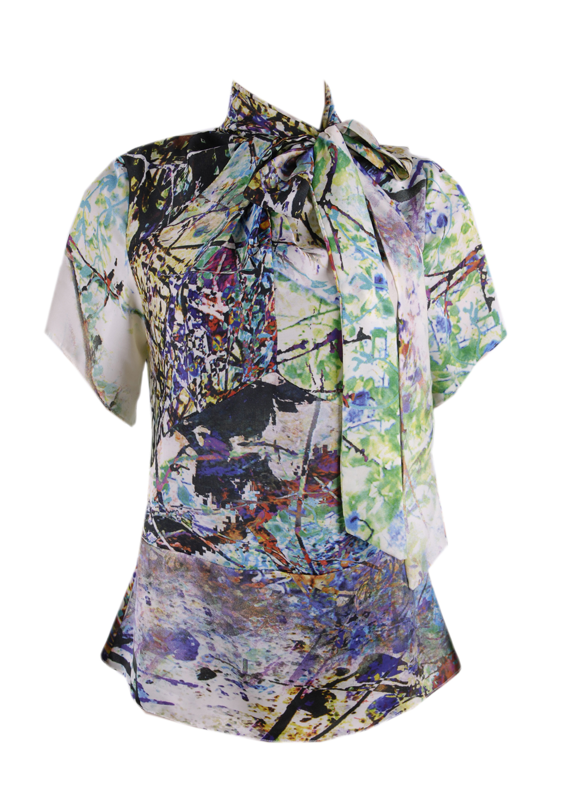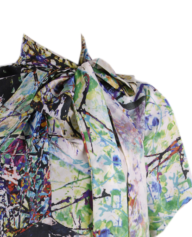 Print Silk Top with a bow on the neck