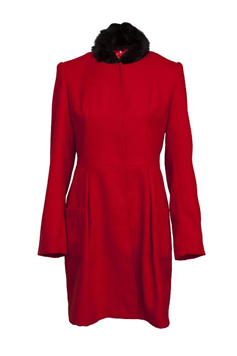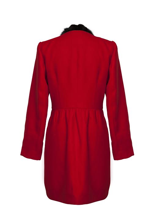 The black Fur on the collar Of This Coat Contrast Perfectly With Its Striking Red Colour. The Embellishment At The Shoulder Pads Only Adds To Its Finesse. Teamed With Black Heels And A Golden Clutch, This Coat Makes For A Jaw-Dropping Outfit.