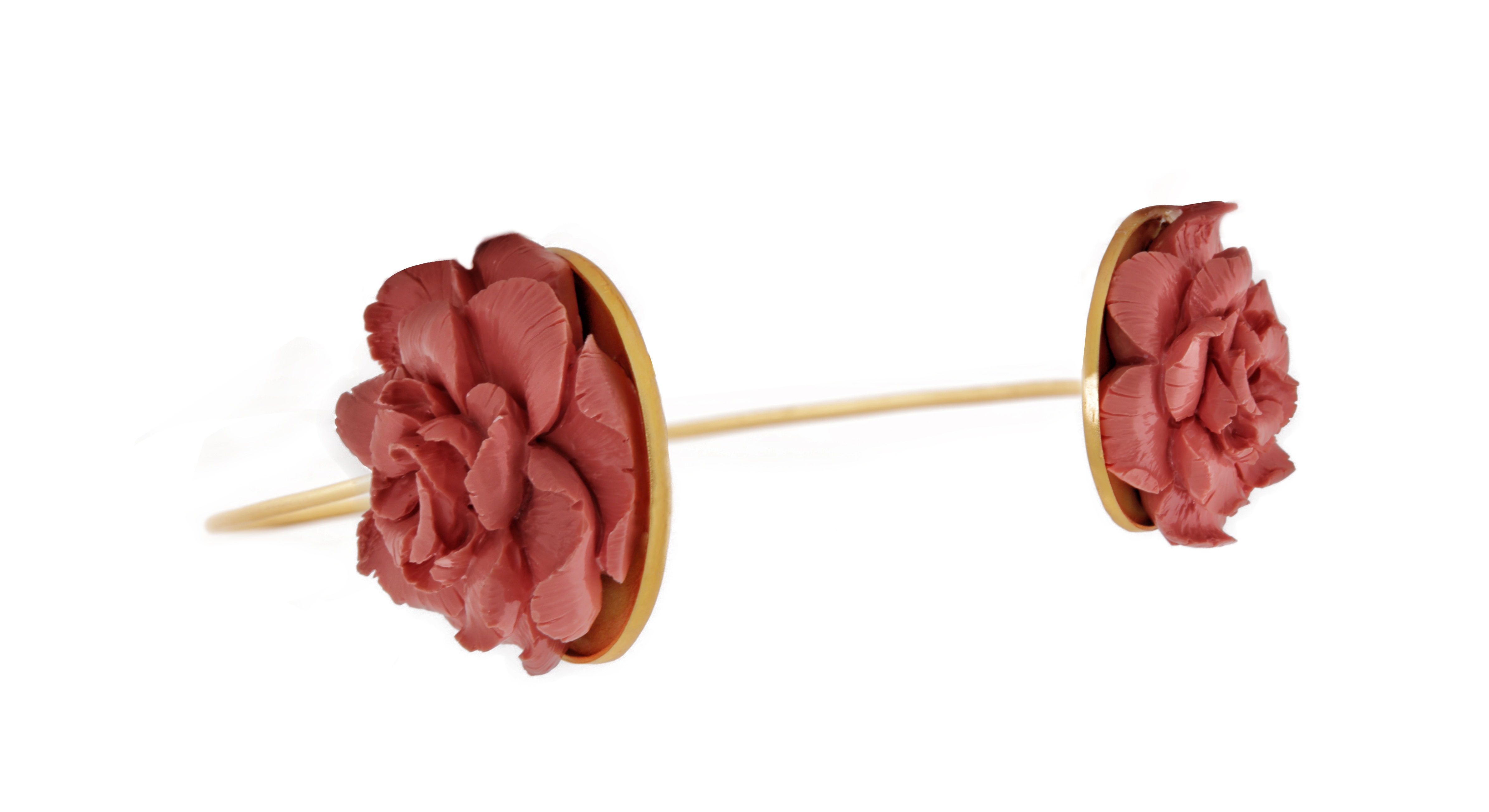made of copper plated with gold carat 21 flower made of ivory size is big and hair tiara is adjustable / free size