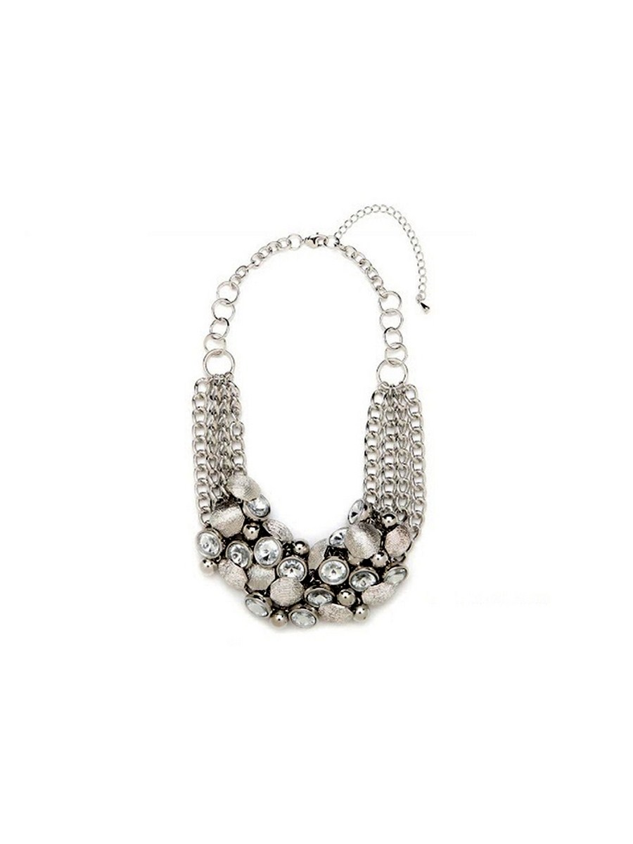 Add a bit of colour and opulence to your outfits with this striking silver necklace. With chains and metal embellishments, you are defiantly going to stand out with this unique piece.