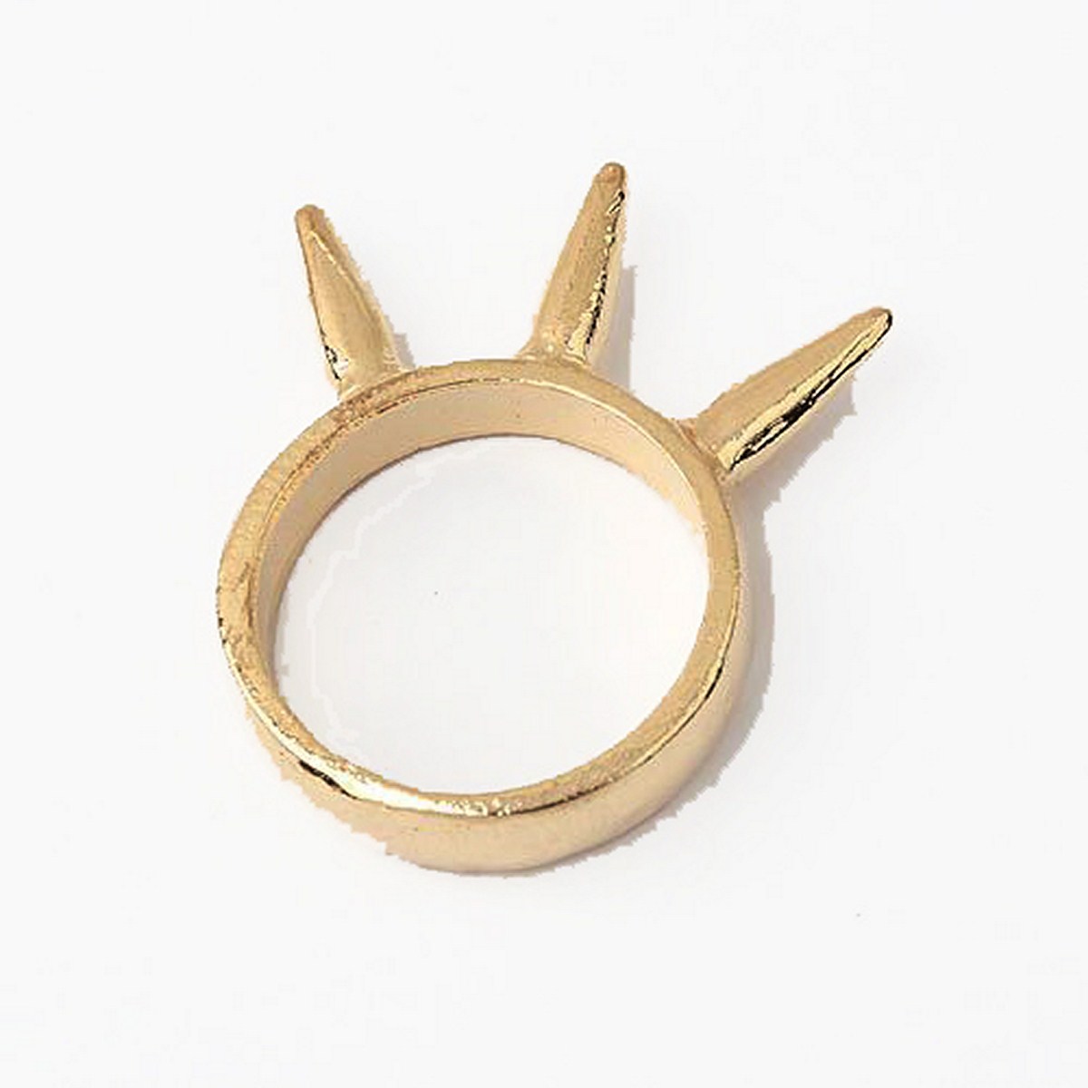 Add a fun conversation starter to your outfits with this gold spiked ring. With three spikes in the middle, this piece will definitely get you noticed. Wear it with a party dress or evening looks for an edgy touch.