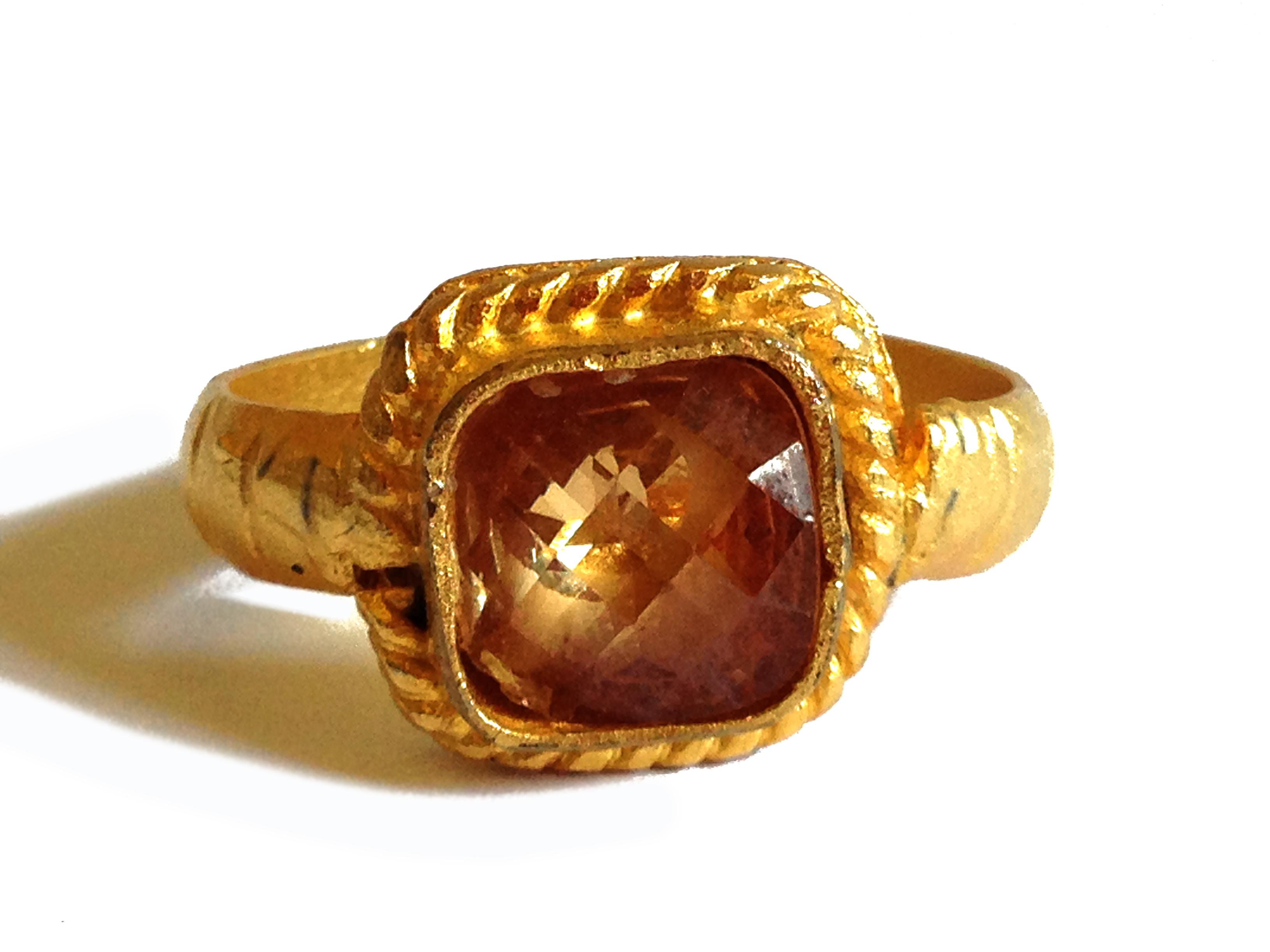Gold plated ring with squared zircon gem.