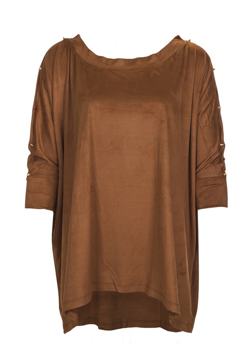 This loose fit suede top is the perfect piece for weekend brunches and last minute dates. The golden spikes on the shoulders are the epitome of fierce, team it with leather leggings and suede ballerina flats. Make sure to tie your hair up to show off these edgy details!