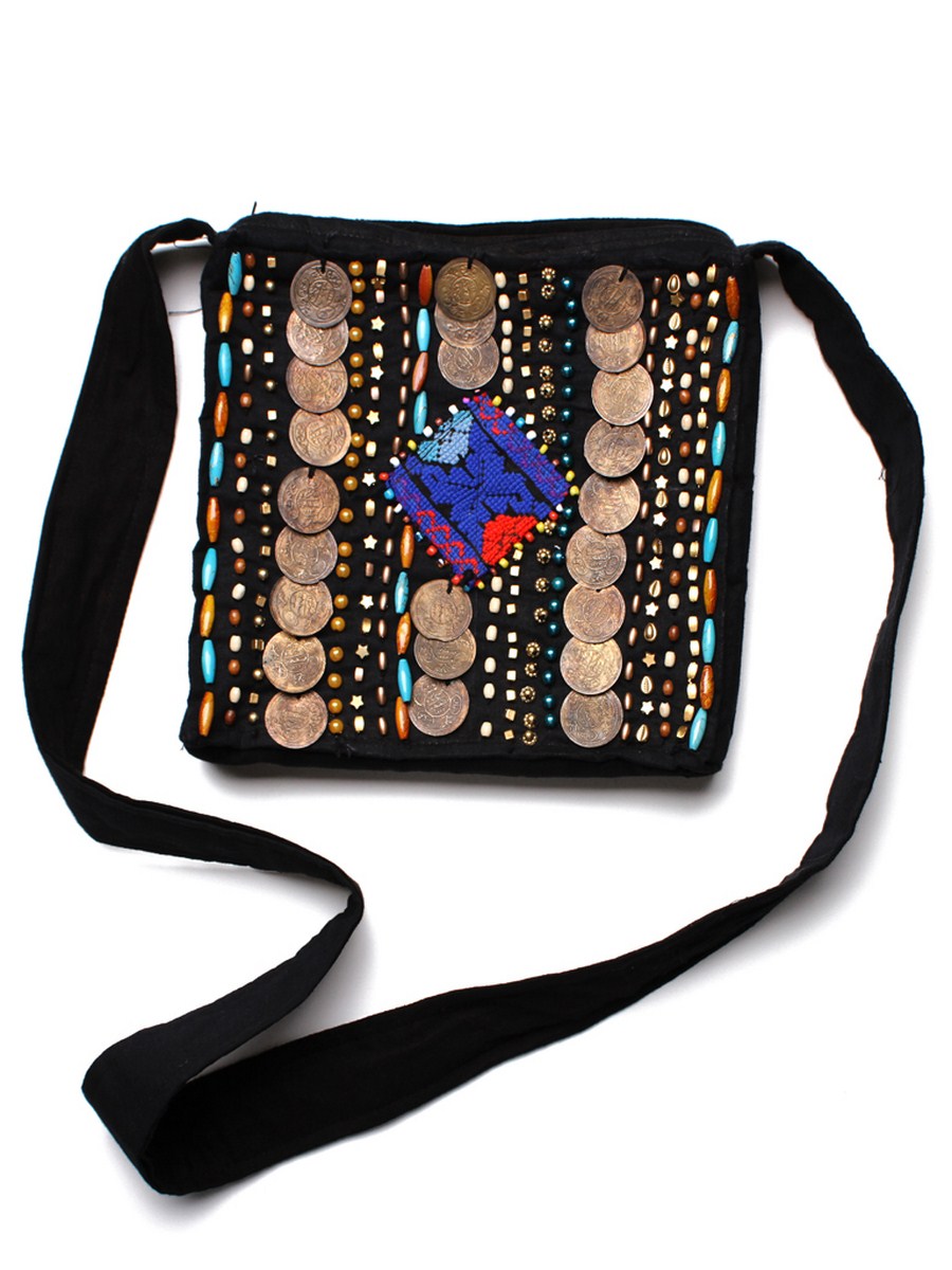 Beautifully embellished for the ultimate bohemian feel, this cross bag from Tafaneen defines boho chic. With colorful assorted coins and beads, this carryall will be your go to bag for everyday looks. Wear it with casual jeans and oversized sunglasses.