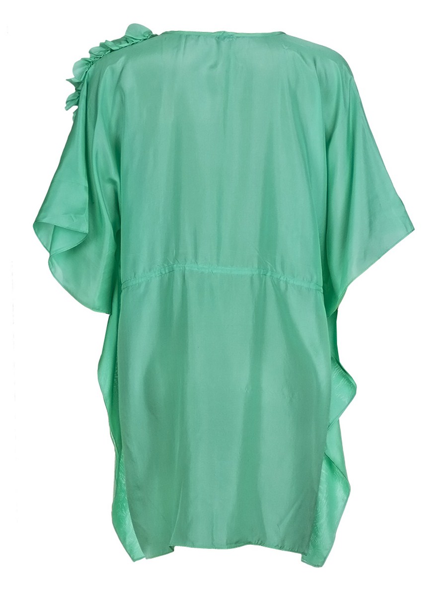 This great top offers comfort with a touch of femininity. Made of silk, this look is perfect for brunch dates or weekend outings. And its ruffles and adjustable belt make it perfect for all body types. Wear it with dark jeans and your favorite flats.
